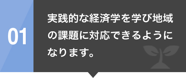 地元に戻って働きたい、新たなビジネスで地域を変えたい、NPOで人の役に立ちたい。それぞれの目標やスタイルに合わせて、自分だけの未来を描けるように地域社会について経済学・経営学の観点から広く学びます。