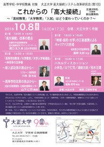 | 14:50~15:50 | 「高等学校教育」「大学教育」「大学入学者選抜」一体改革の全体像 ~新入試改革の視点から~ リクルート進学総研 小林浩 所長 ~高等学校改革の視点から~ 大阪大学高等教育・入試研究開発センター 山下仁司 教授 |