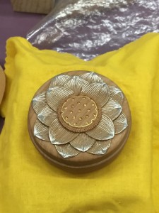今回90分の授業の中で、仏像が生まれた背景、仏像の歴史、仏像づくりについて、彫刻家のお立場から丁寧に紐解いていただきました。信仰の対象として誕生した文様調モティーフは、やがて人物像と化し、作り手によってその作風は様々です。また、仏像をつくる材料も、吉水先生が主として用いられる木材の他、各種ご紹介いただきました。