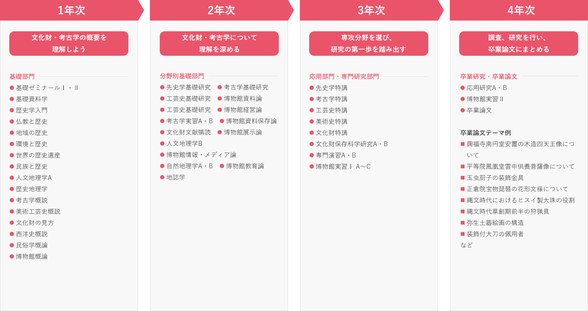 考古学と美術史の調査方法をはじめ、保存や博物館での活用についても学びます。