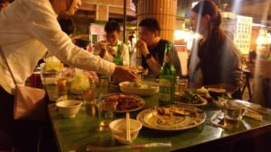 そんな夜市の一角でとった食事では、魚やエビのほか、カエルなど見慣れない食材を使った、日本では食べられないような料理が振る舞われました。初めての海外で緊張もありましたが、新鮮で楽しい体験で初日を終えました。