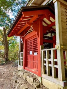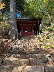 そこからさらに30分ほど登り、ついに奥の院男具那社へ到着しました。険しい山を登り切った達成感とともに、神聖な気持ちで参拝を済ませました。登山中は少々大変でしたが、その分、無事にここまで来られたことに感謝し、怪我なく下山できるよう願いを込めました。