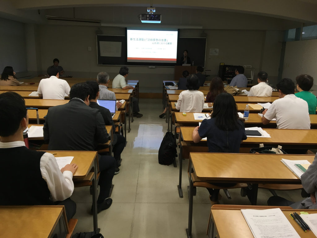 今回の発表では、運動の前期とされている昭和20~30年代における関連資料(山形県新生活運動推進協議会の記録、県社会教育誌、県婦人連盟史、県公民館史、県史、各市町村史および広報誌など)から、山形県における運動の展開メカニズムを析出し、冠婚葬祭との関連を考察しました。