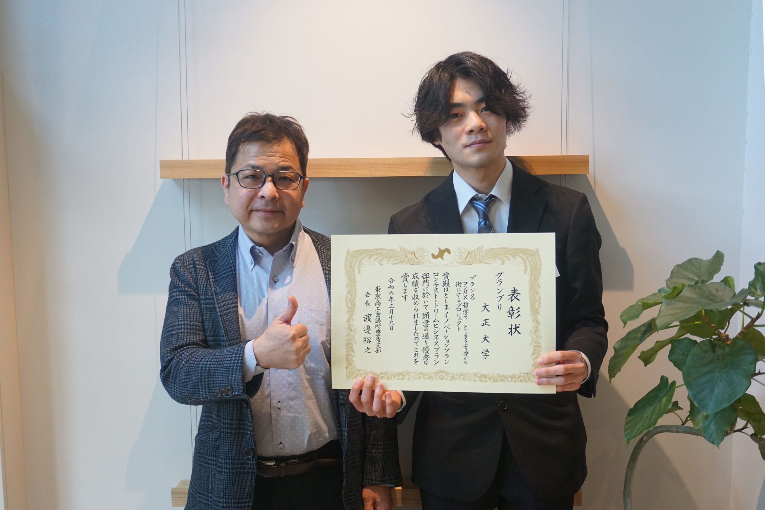 本学の文学部 人文学科 哲学・宗教文化コース2年の中村亮斗さんが、昨年行われた「としまイノベーションプランコンテスト2023」に応募し、ドリームビジネスプラン部門でグランプリを受賞しました。