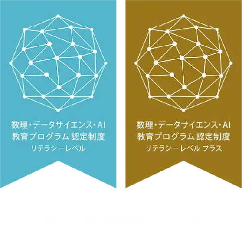 このプログラムは、「数理・データサイエンス・AI教育プログラム(リテラシーレベル)プラス」として、文部科学省から認定されています。