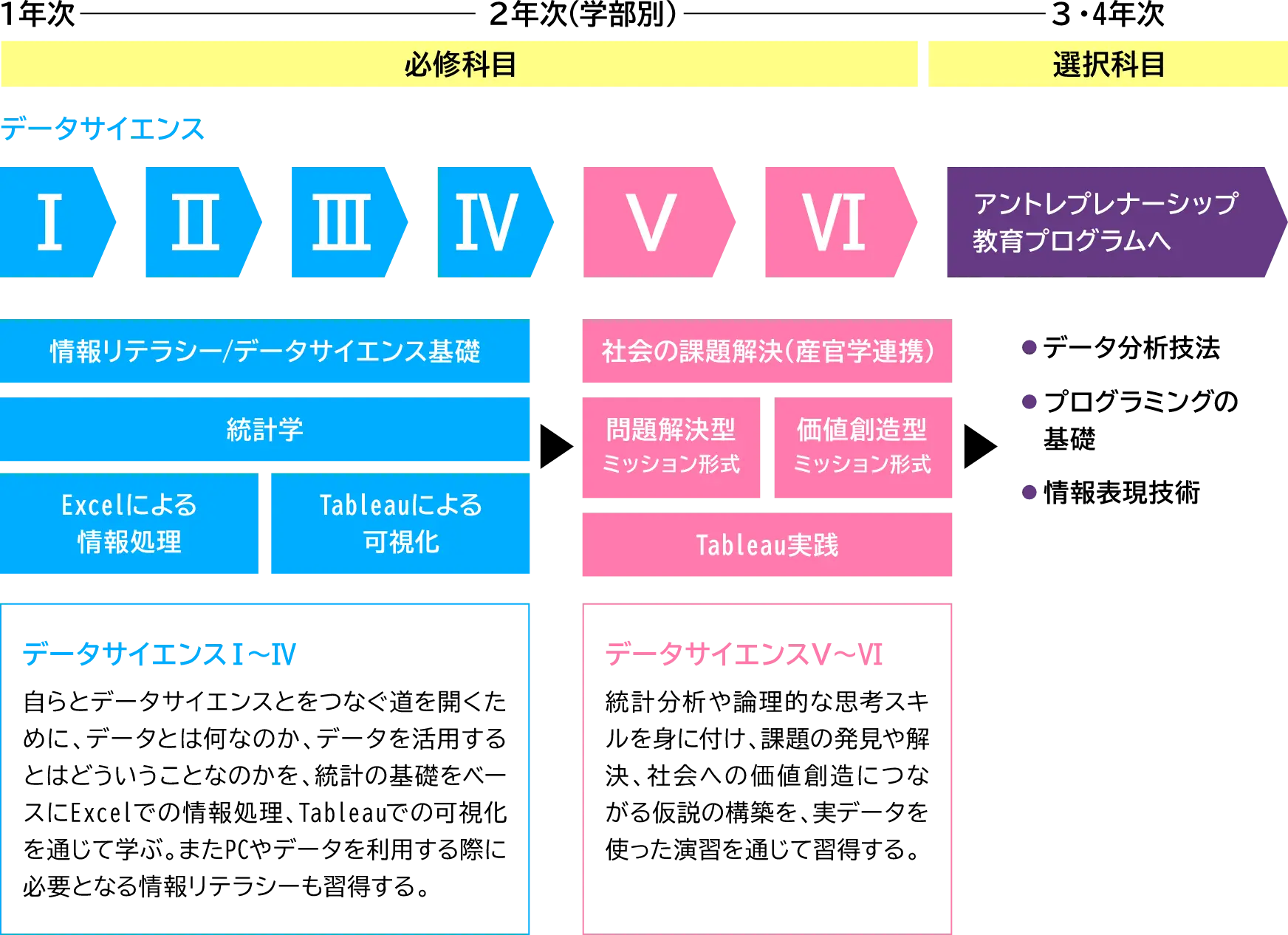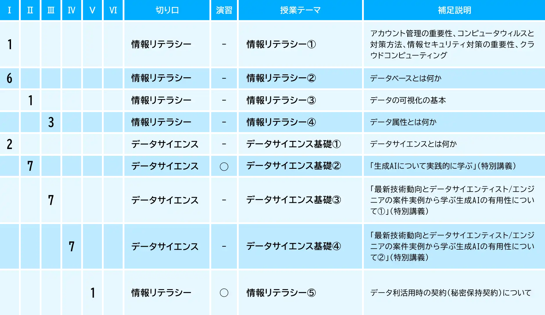 必修科目「データサイエンスⅠ~Ⅵ」 6単位取得