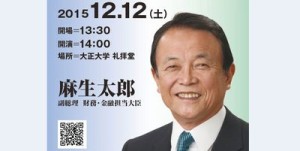 地方創生特別講演 麻生太郎(副総理、財務・金融担当大臣)講演会のお知らせ
