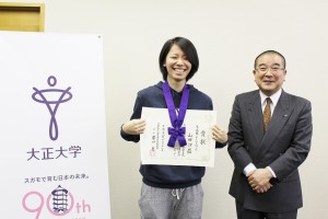 全日本空手道選手権大会で準優勝の空手道部 山田沙羅選手が学長を表敬訪問