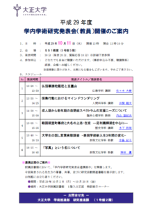 平成29年度 教員による学内学術研究発表会を開催(2017年10月11日13:10~)