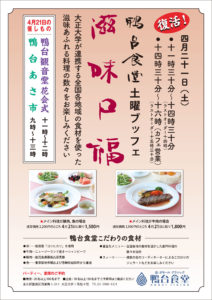 4/21(土)鴨台食堂の土曜ビュッフェが復活します