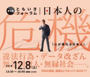 2018/12/8(土)第4回ともいきフォーラム「日本人の危機―心が壊れる日本人―」を開催いたします