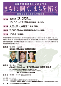 2/22(木)地域寺院倶楽部シンポジウム「まちに開く、まちを拓く-地域とともに生きる寺院の姿-」開催