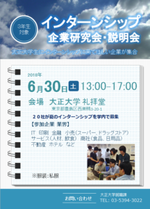 大正大学就職サポートプログラム 小規模だから参加できる「インターンシップ企業研究会・説明会」開催―2018年6月30日(土)13:00~17:00―