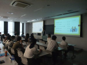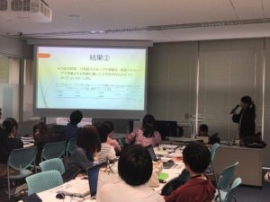 「心理学実験」の授業で、学生がストループ実験の結果を発表しました。