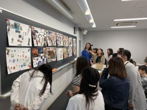 心理演習(隅谷 理子先生)において、コラージュを作成しました。グループで2作品ずつ作成し、そのお披露目会です。