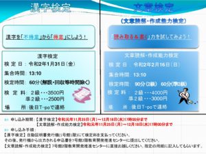 令和元年度秋学期漢字検定、文章検定を実施します!