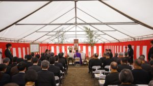 3/28(木)「新8号館新築工事」の地鎮式が行われました