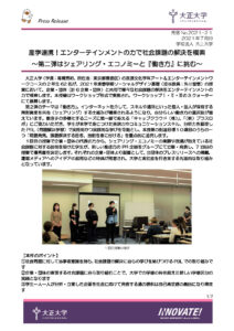 【プレスリリース】産学連携!エンターテインメントの力で社会課題の解決を模索 ~第二弾はシェアリング・エコノミーと『働き方』に挑む~