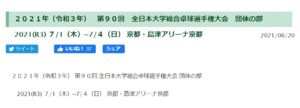 【卓球部の活躍】「2021年(令和3年) 第90回 全日本大学総合卓球選手権大会 団体の部(7/1日(木)~7/4(日)」が、 島津アリーナ京都(京都府)で開催されます