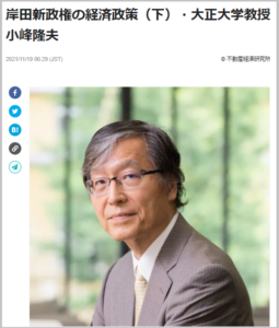 【教員の活躍】小峰隆夫教授(地域構想研究所)がニュースサイト「不動産経済オンライン」にて岸田新政権の経済政策(下)と題し、自身の考察を連載しています