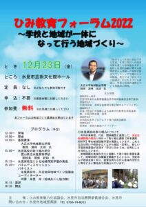 【教員の活躍】浦崎太郎教授(地域創生学科)が富山県氷見市開催「ひみ教育フォーラム2022(12/23)」に登壇します