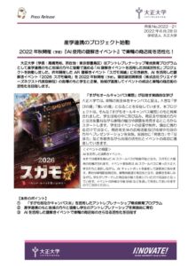 【プレスリリース】産学連携のプロジェクト始動 2022年秋開催(予定)『AI使用の謎解きイベント』で巣鴨の商店街を活性化!