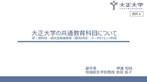 【教員の活躍】文部科学省中央教育審議会大学分科会大学振興部会において、共通教育の取り組みを神達知純副学長、前田長子教授が報告しました