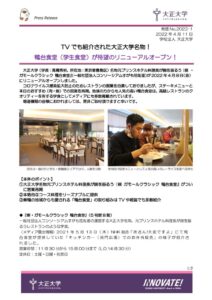【プレスリリース】TVでも紹介された大正大学名物! 鴨台食堂(学生食堂)が待望のリニューアルオープン!