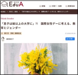 【教員の活躍】田中俊之准教授(人間科学科)が朝日新聞EduAにてジェンダーバイアスについてコメントしています