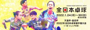【卓球部の活躍】1月24日(月)、東京体育館にて 「天皇杯・皇后杯2022年全日本卓球選手権大会 一般・ジュニアの部」が開催されます