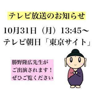 【教員の活躍】勝野隆広教授(仏教学科)が「テレビ朝日『東京サイト』」に出演します