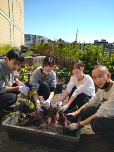 【イベント情報】7号館3階テラスのキャンパス農園にてサツマイモが収穫されました