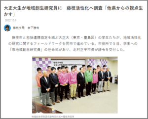 【学生の活躍】本学学生が藤枝市の地域創生研究員に任命され静岡新聞に掲載されました