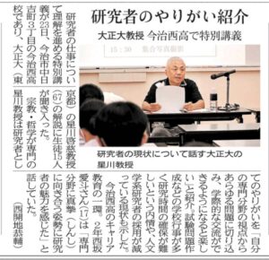【人文学科国際文化コース】愛媛県立今治西高校にて、星川啓慈先生による講演会が開催されました