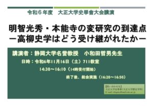 令和6年度 大正大学史學會大会を開催します