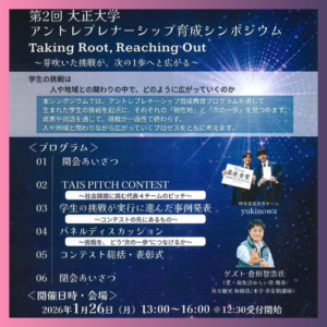 【イベント】1月26日(月)に第2回 大正大学 アントレプレナーシップ育成シンポジウム「Taking Root, Reaching Out ~芽吹いた挑戦が、次の1歩へと広がる~」を開催