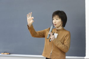 まず、本学学長補佐の吉田より、本学の教育や高大接続について説明いたしました。