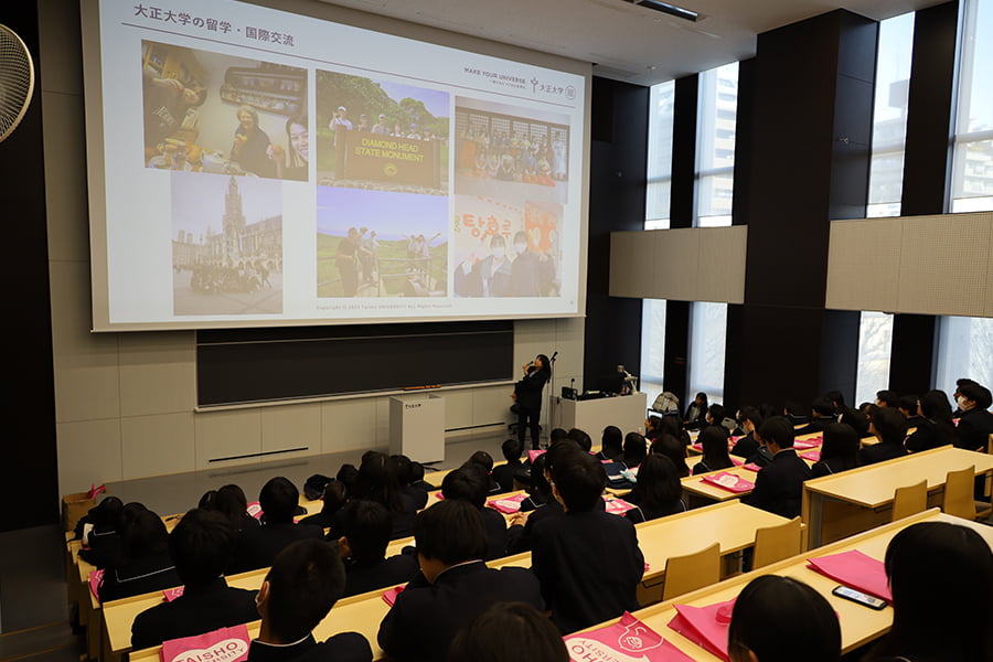 この取り組みは「高大接続パートナーシッププロジェクト(S-U.P.P)※」の一環として実施したもので、板橋有徳高等学校の1年生約200人が参加しました。