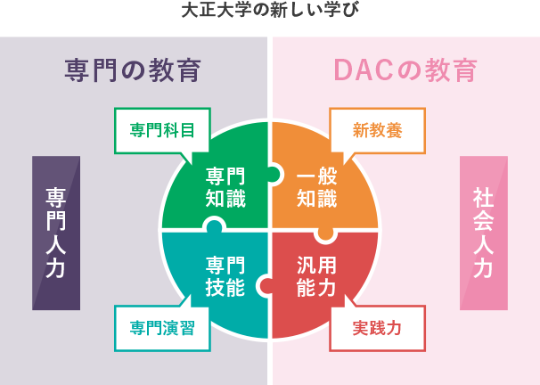 大正大学の建学の理念,教育ビジョン及び運営ビジョンを具現化するために2020年から作られた、大正大学独自の組織。Diversity Agency Community(学内外を問わず多様な人々が共に学ぶ共同体)の頭文字を取っています。