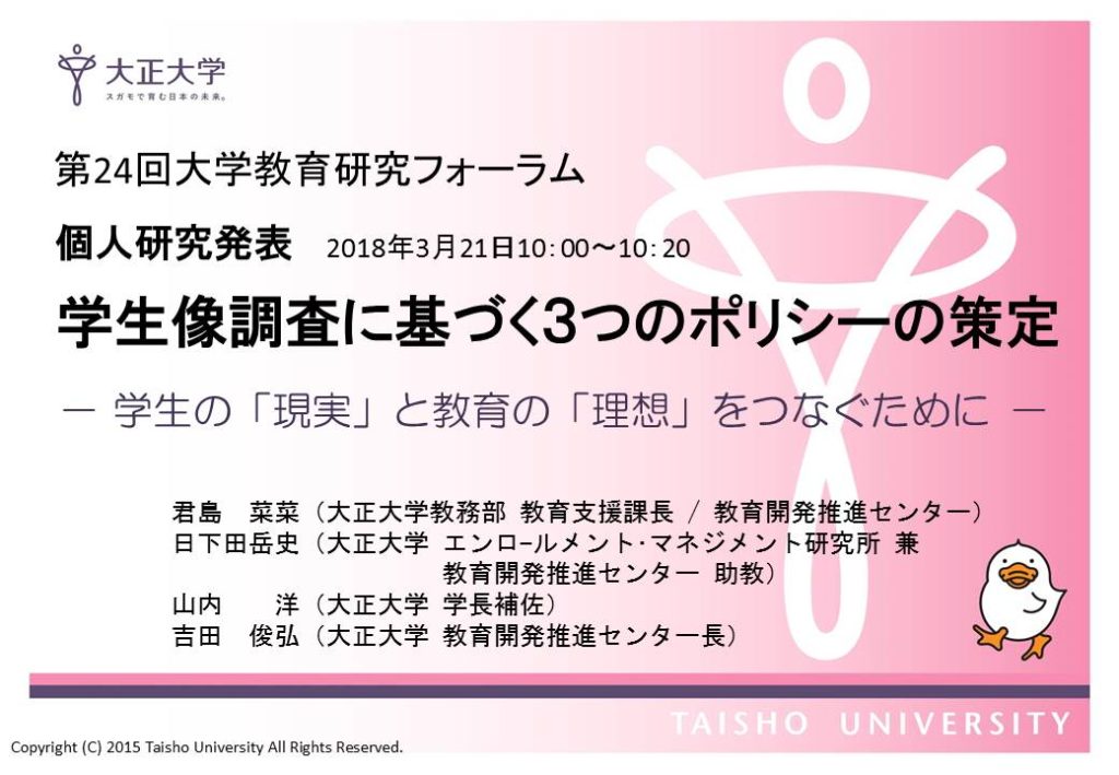 題名は『学生像調査に基づく3つのポリシーの策定』です。
