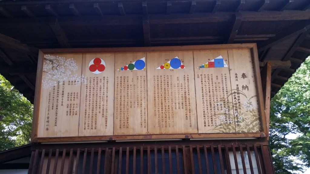 今回は、算額をもとめて本学ゆかりある長野の善光寺と、本学教授塩入法道先生よりご教示賜りました長野県千曲市の武水別神社へ調査してきました。善光寺史料館には横302cm・縦105cmの算額が展示されてありました(撮影禁止)。また、武水別神社御供所の外壁には横470cm・縦200cmの算額が掲げられてありました(撮影許可)。復元された武水別神社算額は、面積の大きさでは全国で最大のものだそうです(「甦った幻の算額」より)。今後も大正大学ゆかりある地に赴きたいと思っています。 畠山仁男 2018.8.17~18