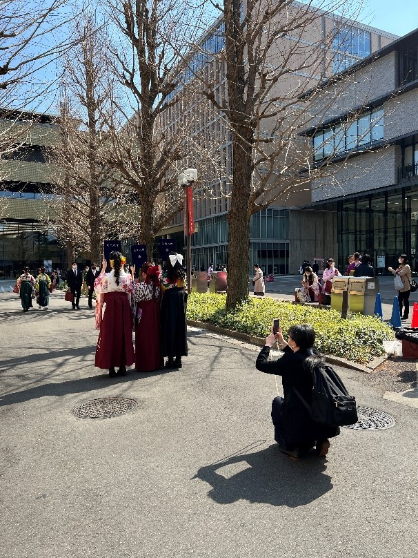 3年ぶりのにぎやかな学位授与式の様子に、本日案内業務を担当した私たちチューターからの学生や