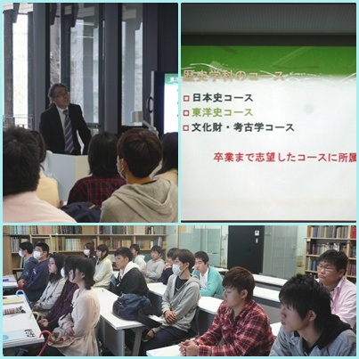 歴史学科全専任教員の紹介後、各コースに分かれて更に詳しい説明を行いました。