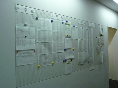「3号館の4階に一覧が掲示されているので、各自ご確認を!」