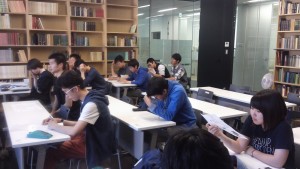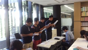 文献を読みこむ係、まとめる係、レジュメをつくる係、PCに打ち込む係、読み上げる係、