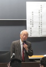 今年度は、戦国時代のご研究を専門分野とされ、NHK大河ドラマ「どうする家康」や「麒麟がくる」などで時代考証をご担当された静岡大学名誉教授、小和田哲男先生をお招きし、「明智光秀・本能寺の変研究の到達点-高柳史学はどう受け継がれたか-」という演題でご講演いただきました。