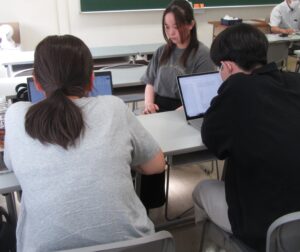 グループに分かれて一人ずつ報告し、互いに意見を交わす活動を通して高め合いました。