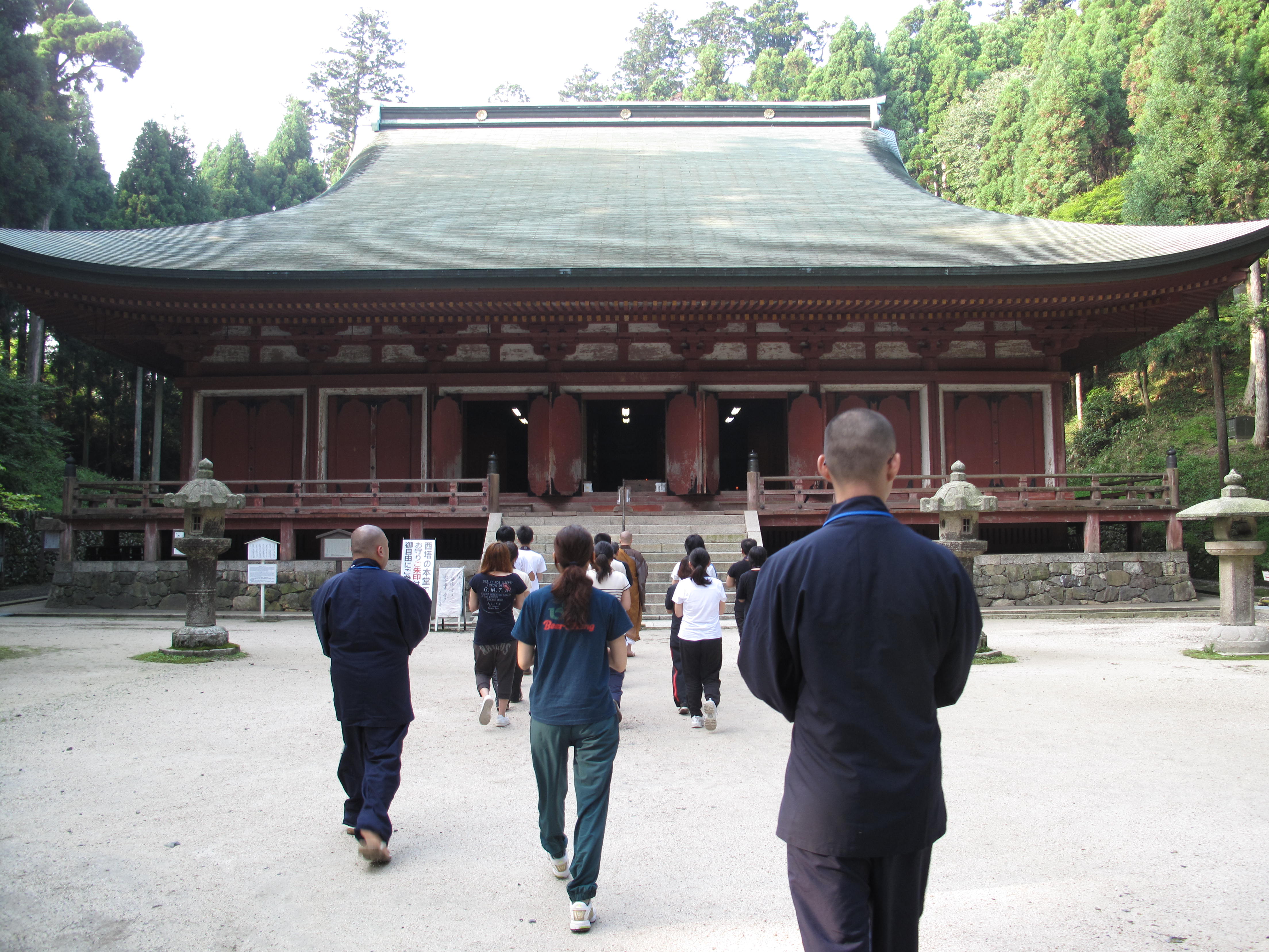 大学が夏休み中の8月21日から24日まで、三泊四日の仏教研修を比叡山西塔にある居士林道場で行いました。この研修は、仏教精神を建学の精神とする大正大学に学ぶ学生が、少しでも仏教の実践修行に触れ体験するための研修ということで、真言宗智山派の総本山である智積院、真言宗豊山派の総本山である長谷寺、浄土宗総本山である知恩院を道場に各年で行われる女子研修道場と、天台宗の総本山である比叡山を会場に毎年行われる比叡山研修道場があります。大正大学設立母体である各宗の本山で、僧侶が行う修行を体験できるという貴重なプログラムです。ですから大正大学に在学する学生ならば学科学年を問わず誰でも参加できる研修となっています。