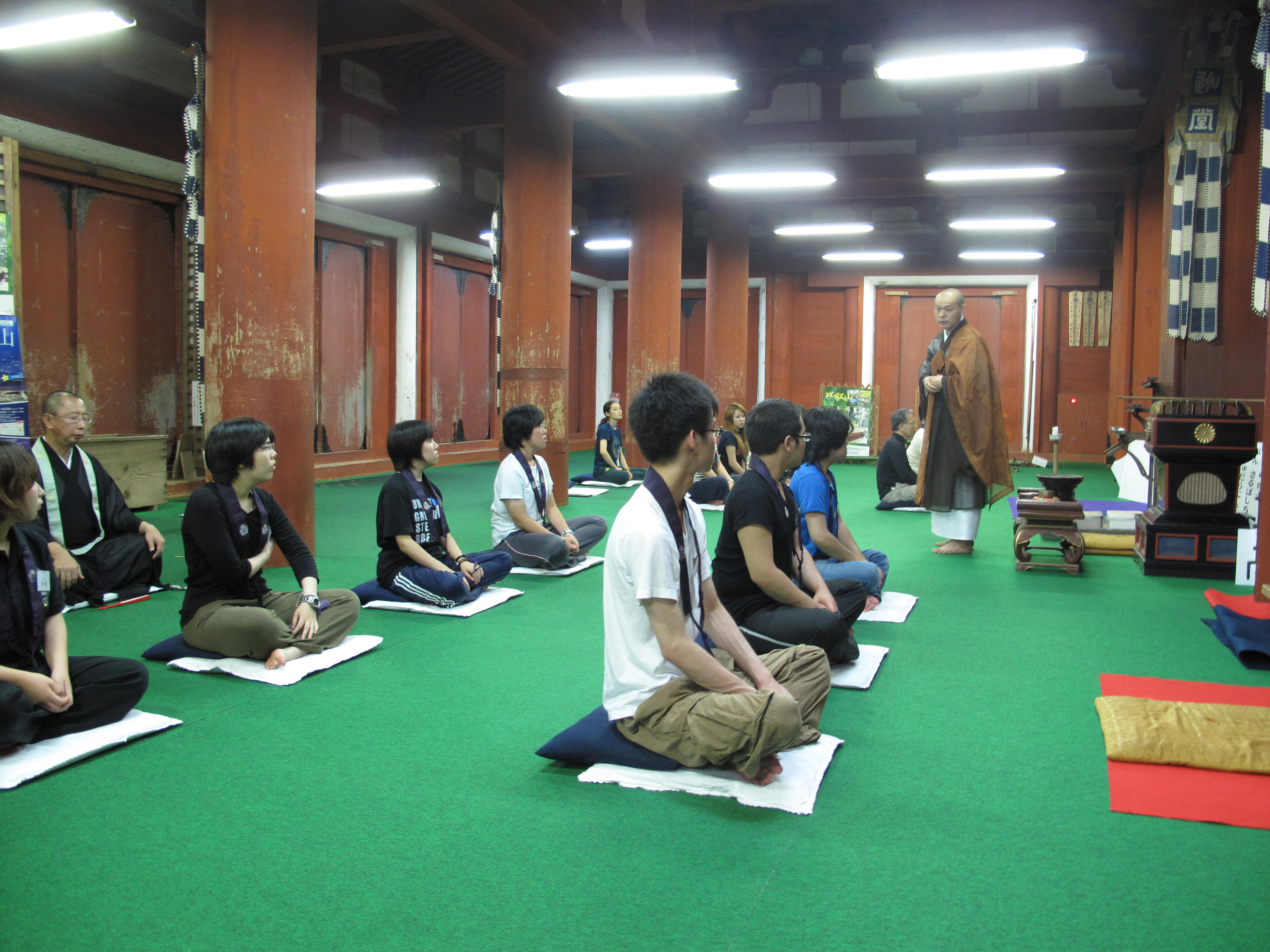 さて、最初の修行は、坐禅止観です。比叡山西塔の釈迦堂(重要文化財の建物)で、比叡山の僧侶の指導のもと坐禅止観を行います。