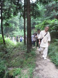 そして無動寺谷を登り明王堂へ。この一時間あまりの急なのぼり坂が一番の難所です。汗だくになりながら、お互いに励ましあい登りきった明王堂でいただいたお茶の美味しいこと。甘露のお茶に心身を癒され、東塔を経てまた西塔の居士林へ戻りました。